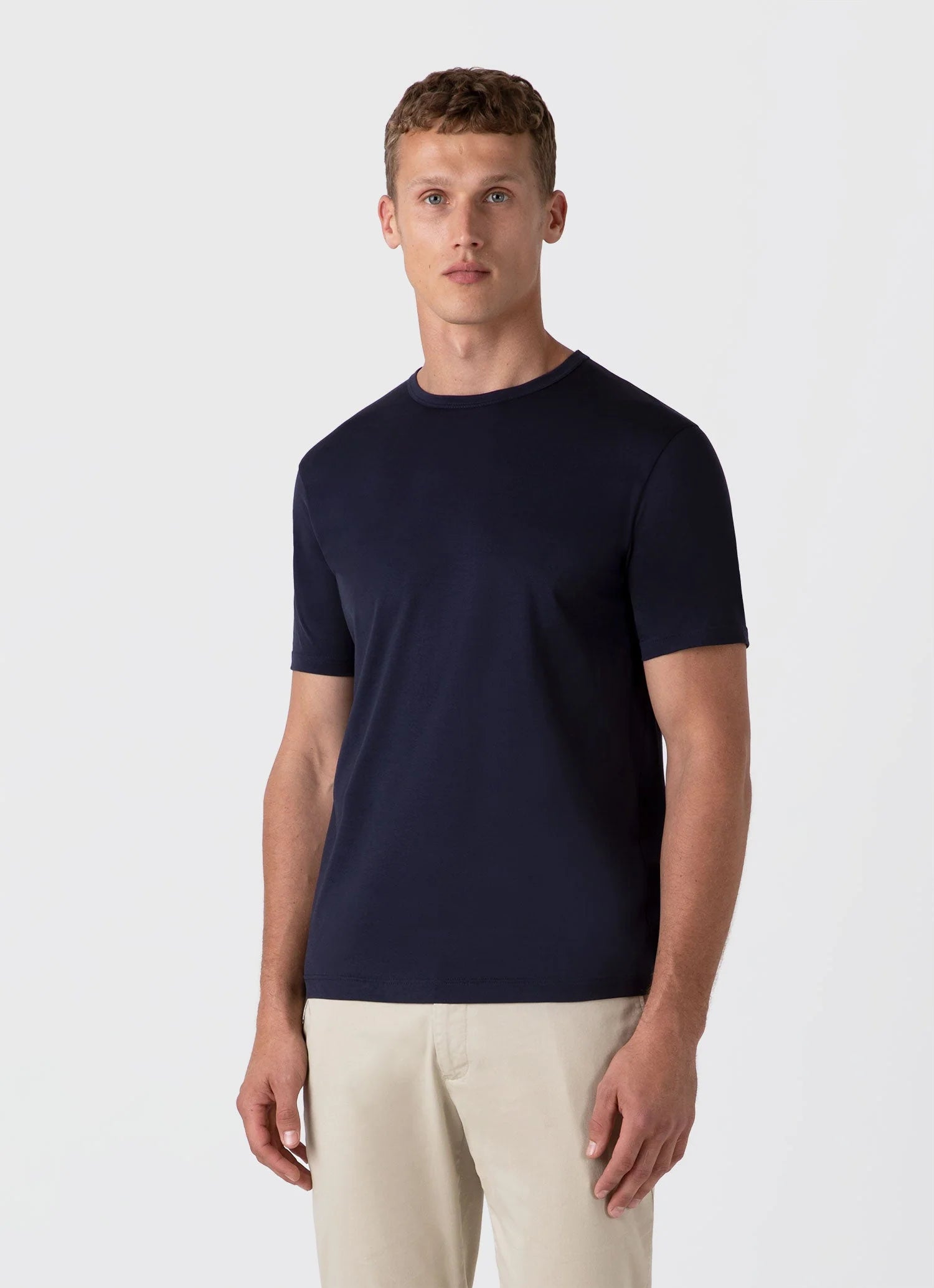 Sunspel Cotton Crew Neck T Shirt - Navy