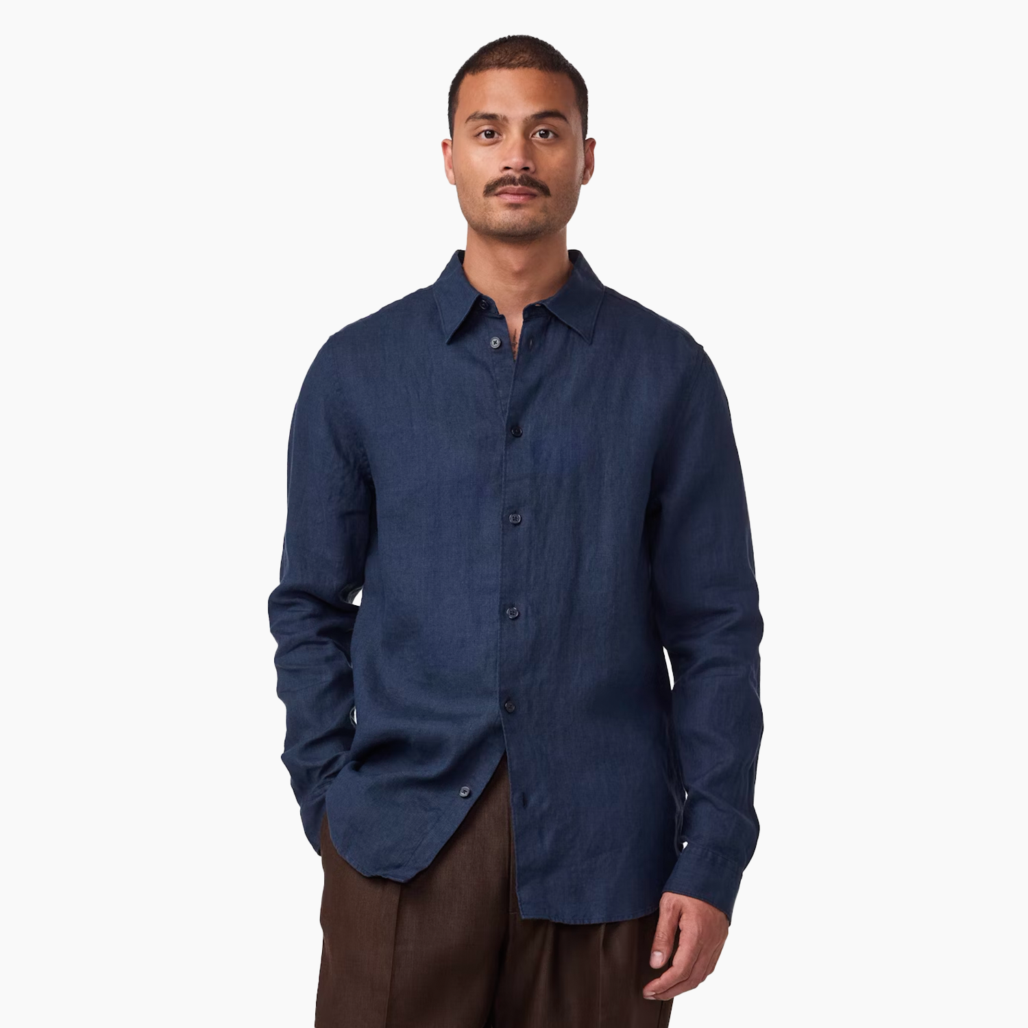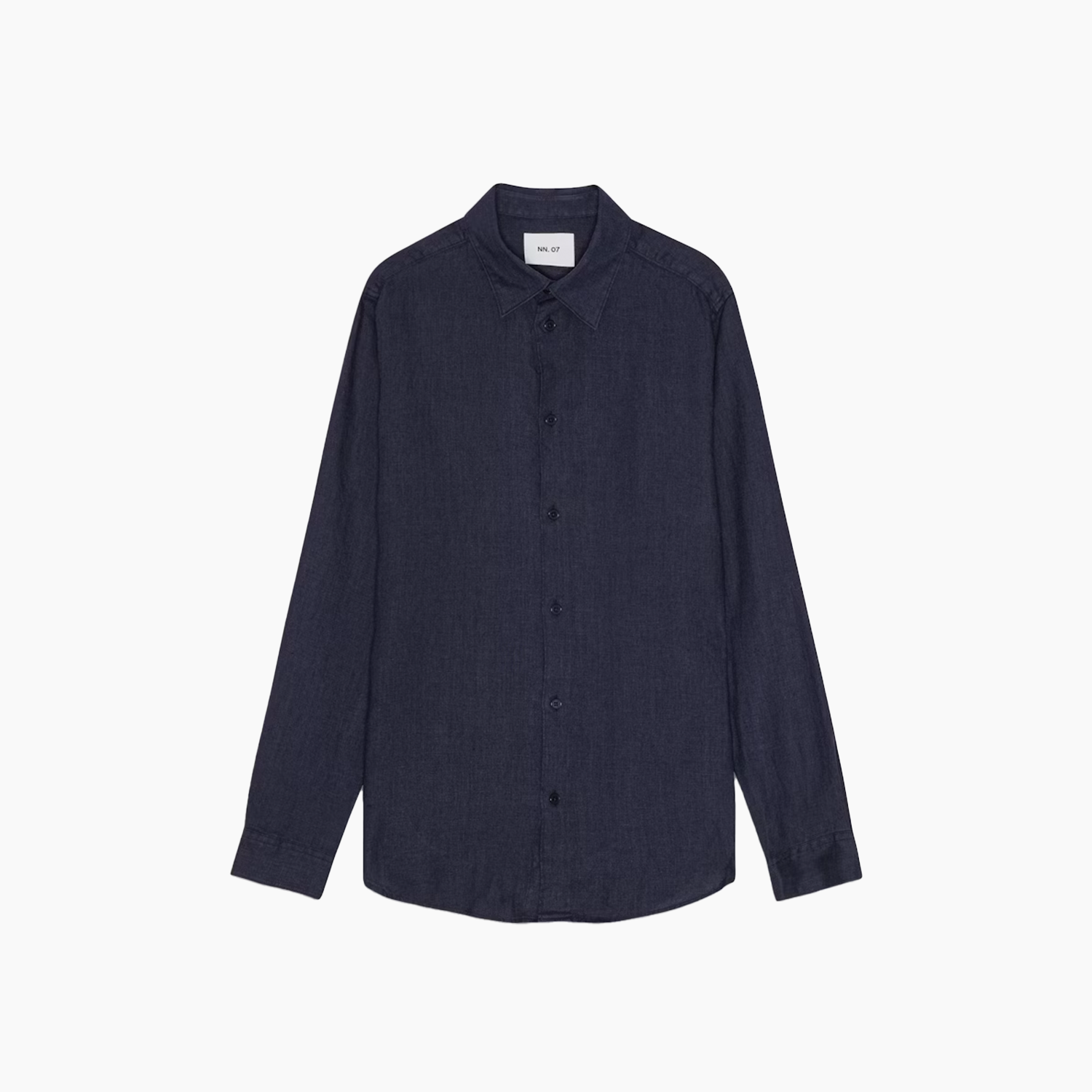 NN07 Enzo Long Sleeve Linen Shirt 5708- Bering Sea