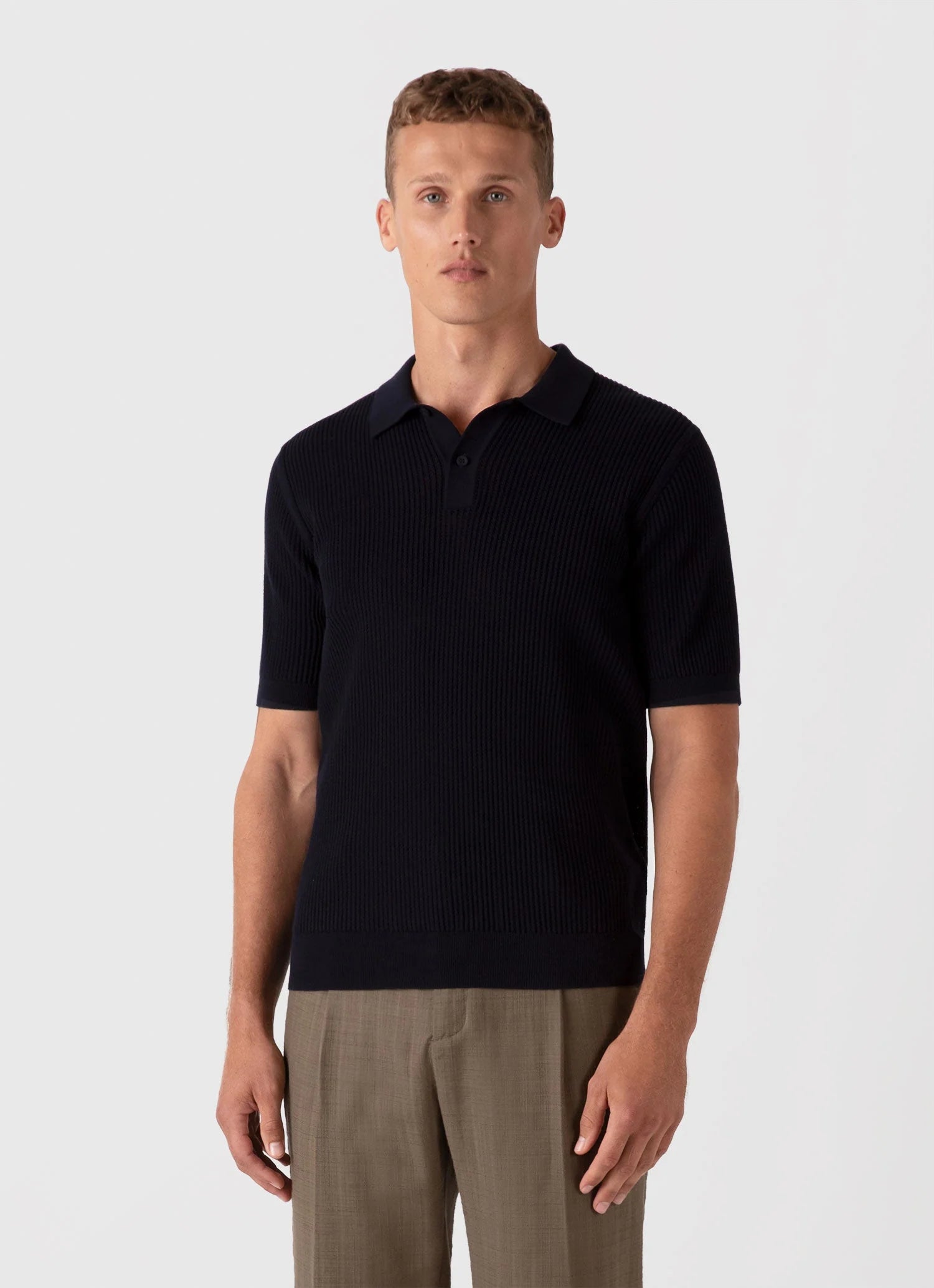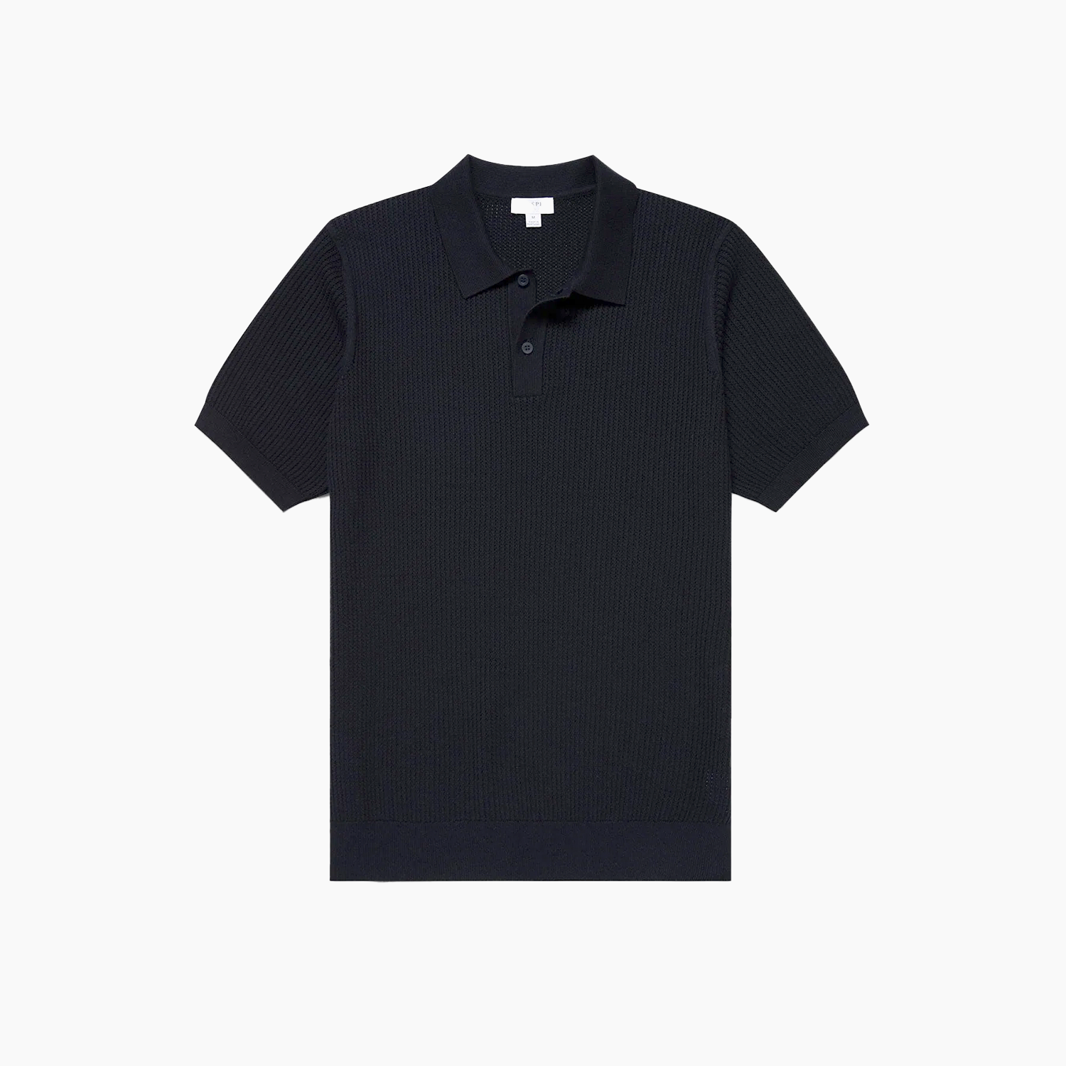 Sunspel Mesh Stitch Polo Shirt - Navy