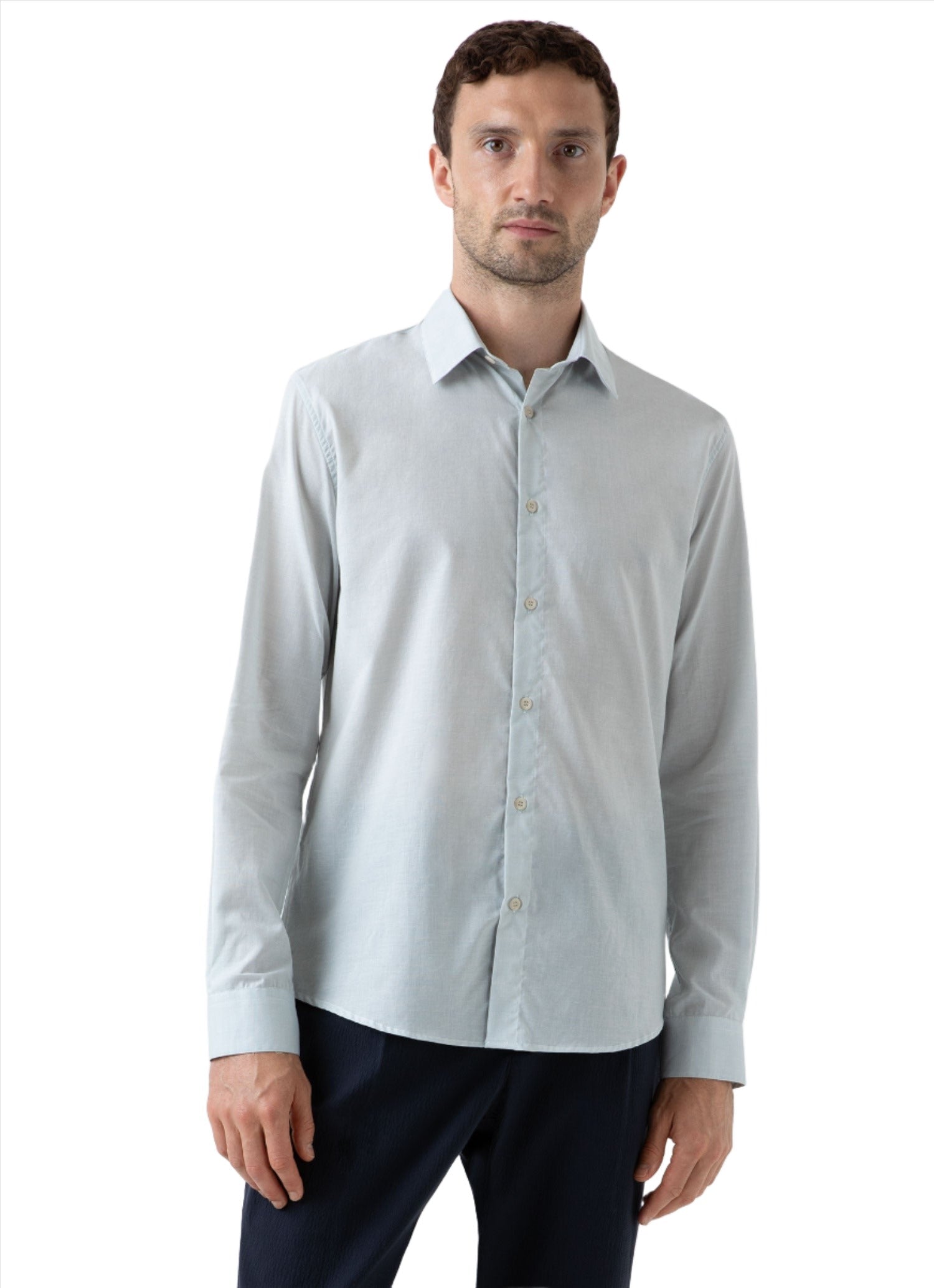 Crafted from an Italian fabric which combines the finest cotton with luxuriously smooth cashmere, this shirt has an exceptionally lightweight, soft feel. It has a regular fit and a timeless, elegant finish. Highly versatile, it is perfect for wearing with a suit or on its own in a more casual ensemble.