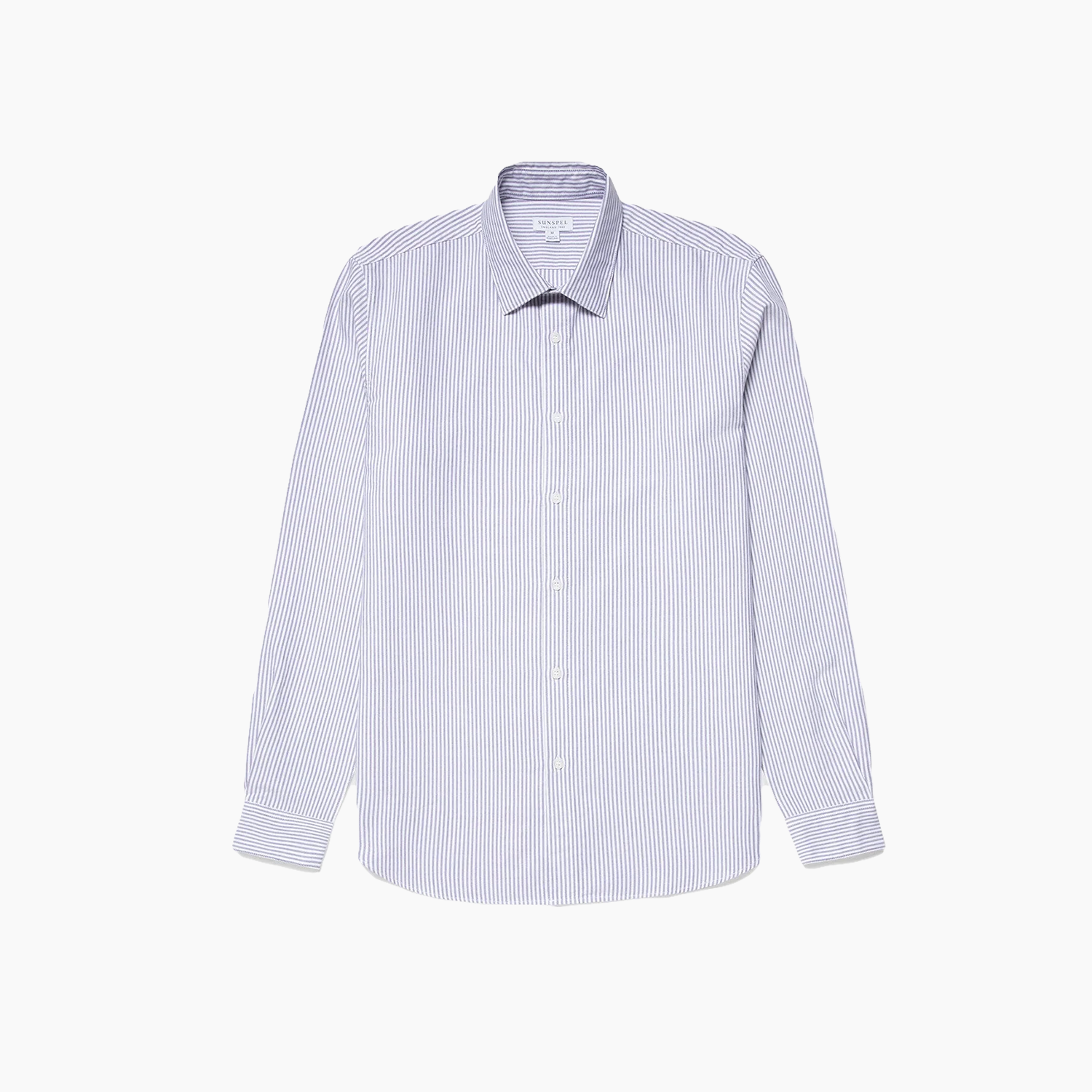 Sunspel Oxford LS Button Down Shirt - White / Navy Stripe