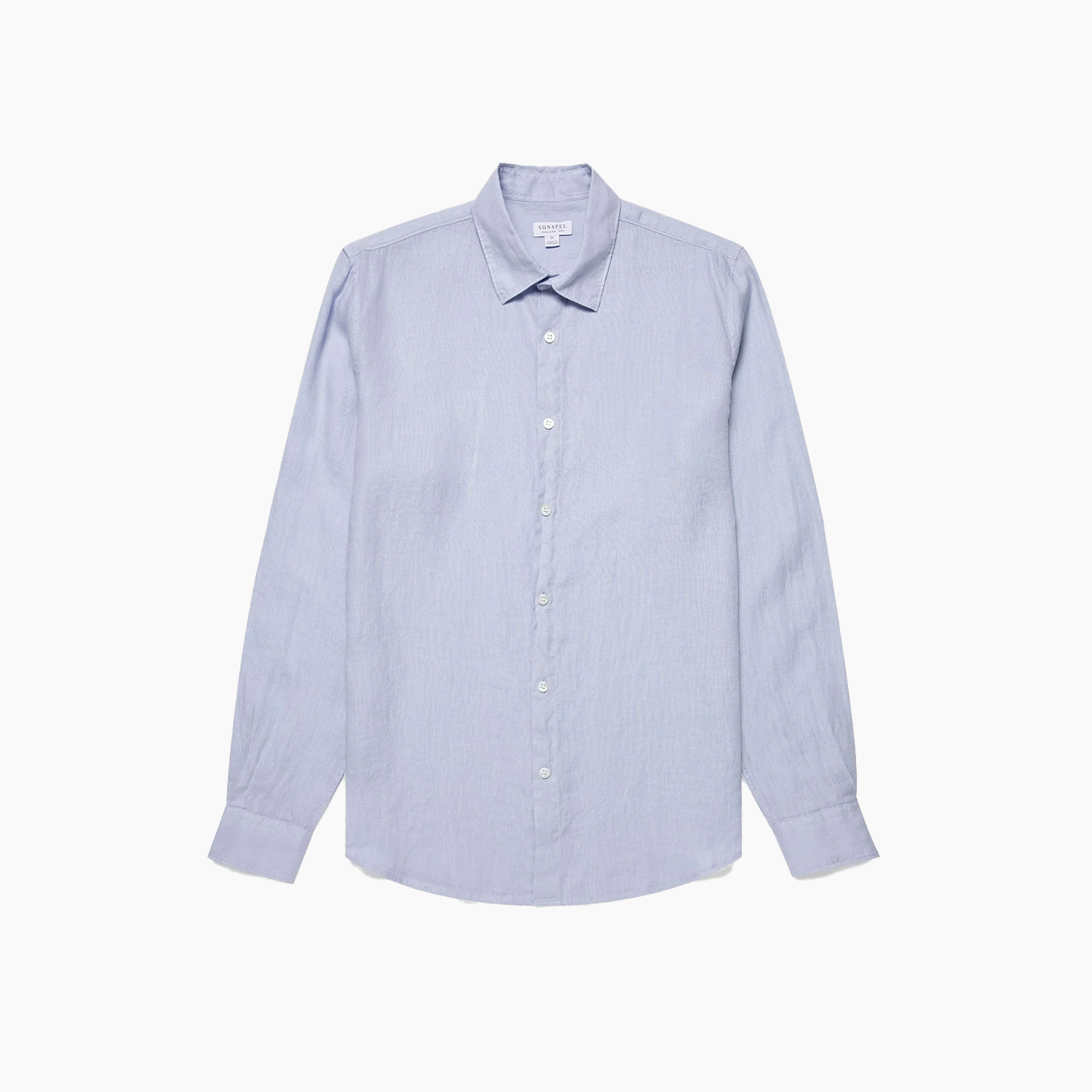 Sunspel Linen LS Button Down Shirt - Light Blue