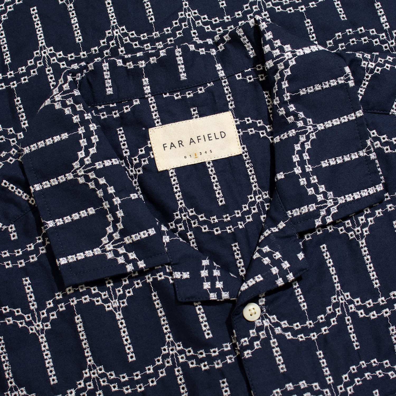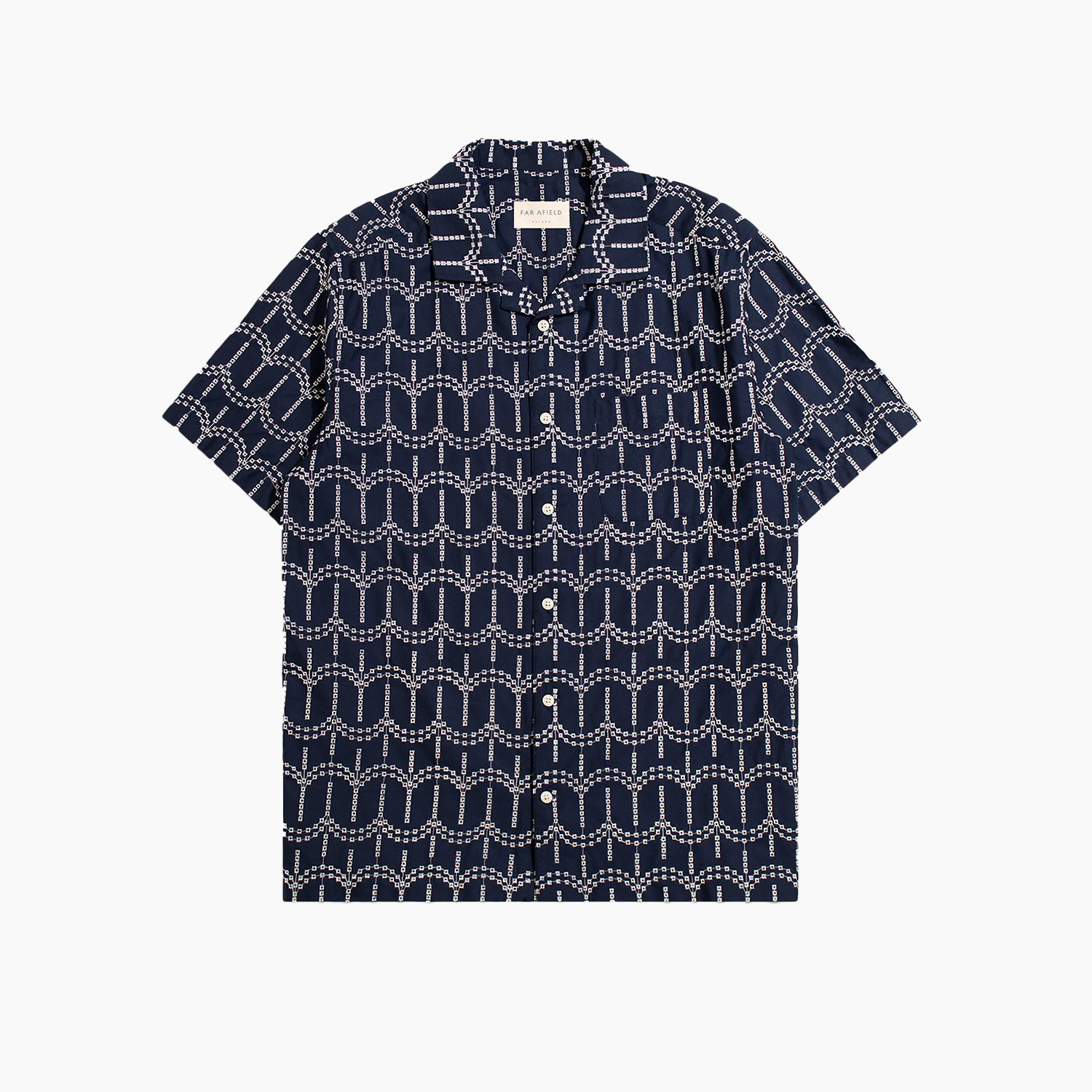 Far Afield Stachio Cotton SS Shirt - Palm Tree Dobby / Navy