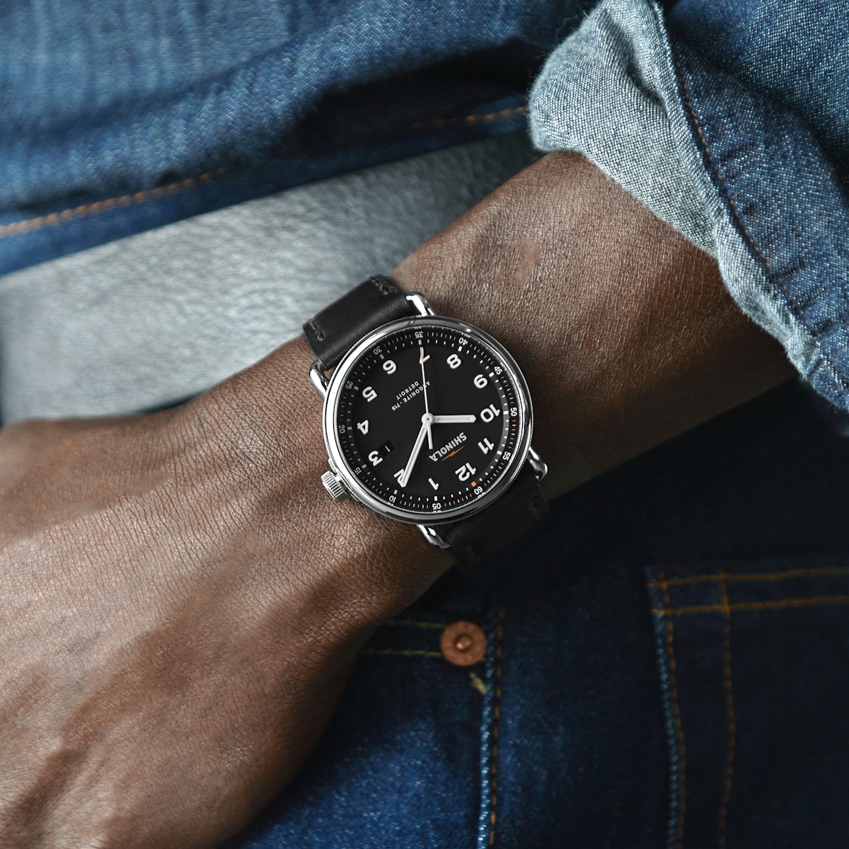 Inspired by Michigan’s mid-century modern marvels, the Canfield Model C’ 56 echoes the striking characteristics of the General Motors Design Dome and the ingenuity of the designers behind it. Assembled in the very same Argonaut Building in Detroit as cars were, gear by gear, from 1928 to 1956, this timepiece represents the intersection of classic, streamlined style and the exploratory era of automotive craft. Bold yet refined, details like its brightly colored bezel and Bourbon Harness leather strap take you on a joy ride while embodying the automotive designer hard at work, hovering over endless iterations of sketches and models.