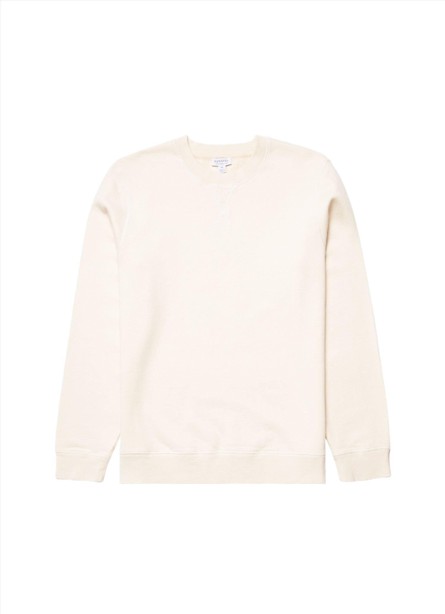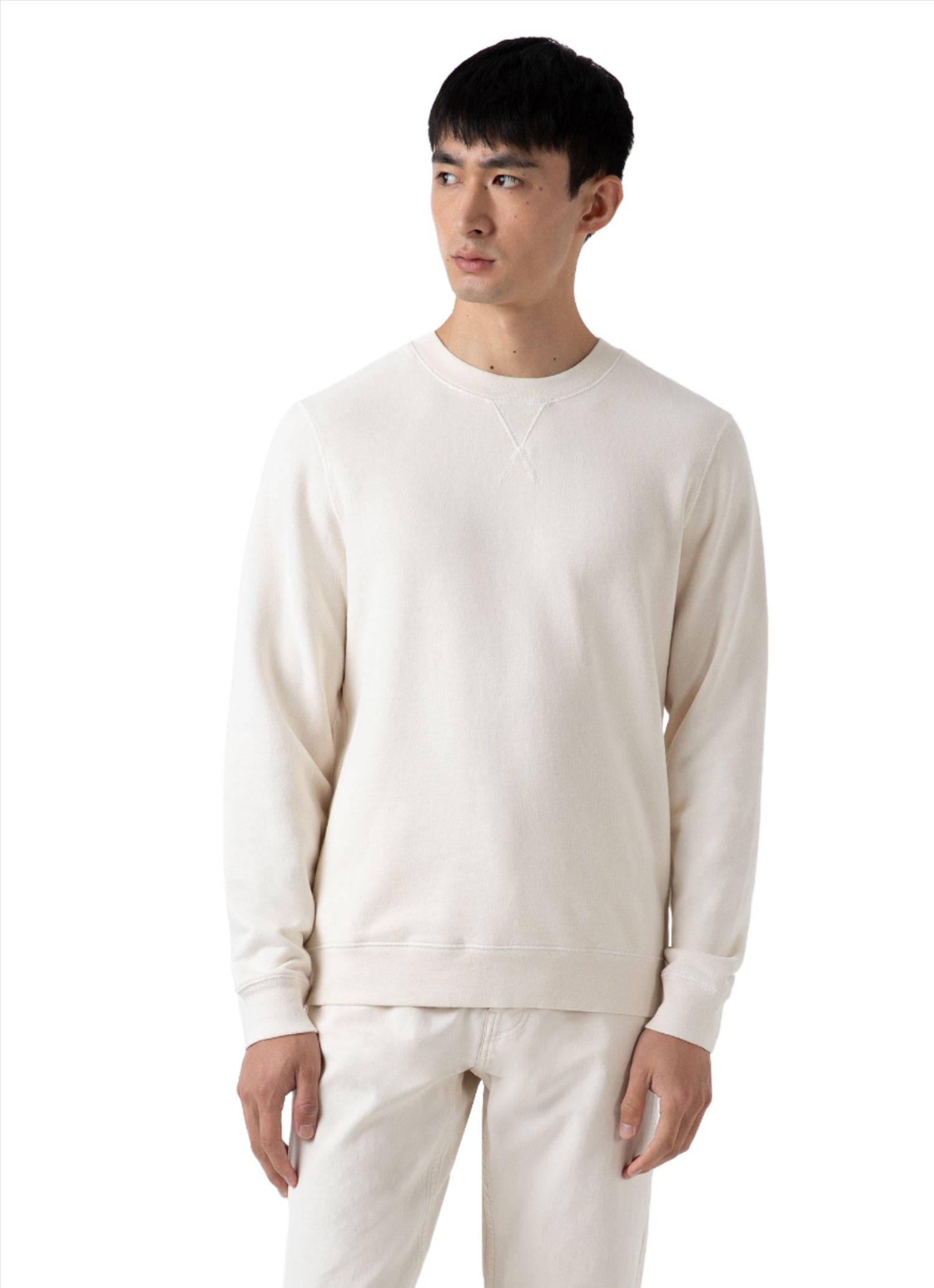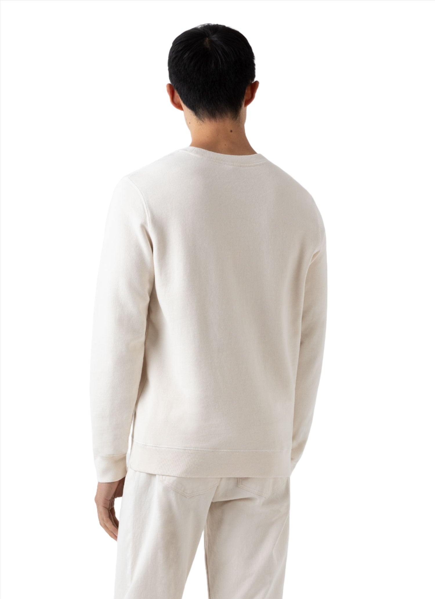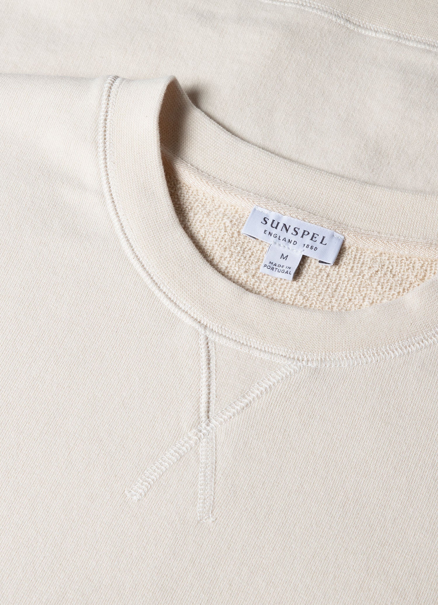 A modern take on the classic athletic sweatshirt, now in an undyed cotton for an entirely natural ecru colour. Introduced by former Sunspel creative director Jonathan Anderson, it has a neat fit and refined sweatshirt detailing, with a V-stitch insert and rib cuffs. Made from an exceptionally soft cotton loopback fabric, its internal loop stitch is specially designed to be warm and insulating. The contemporary cut makes it a highly versatile piece that can be worn as easily with a jacket as it can with matching sweatpants.
