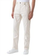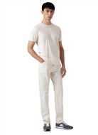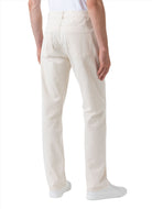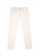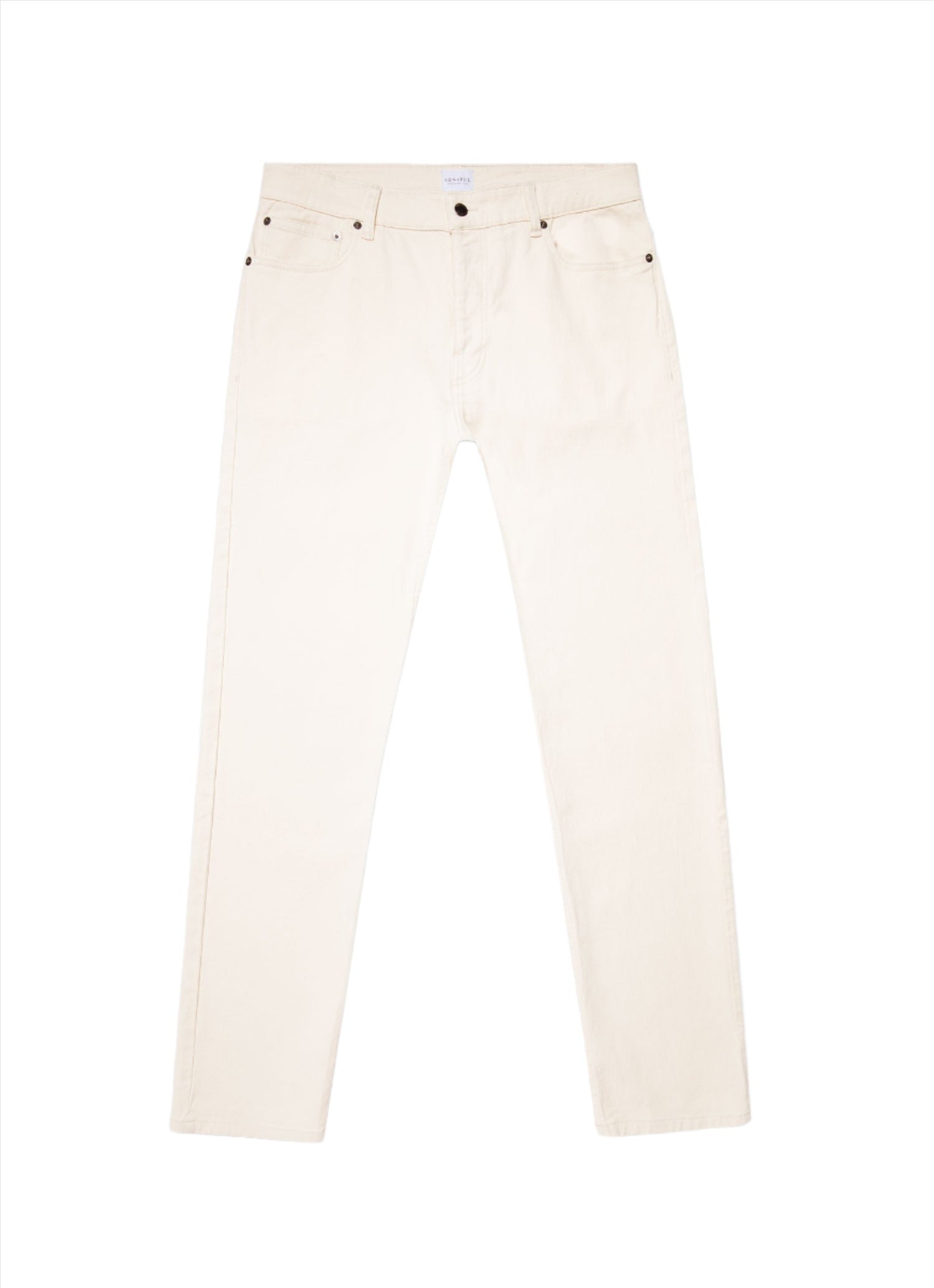 Made from entirely undyed French cotton drill, this easy straight leg trouser is perfect for everyday wear. Finished with two front curved pockets, a ticket pocket and a further two rear pockets with horn buttons. A smart alternative to jeans, this is a wardrobe staple.