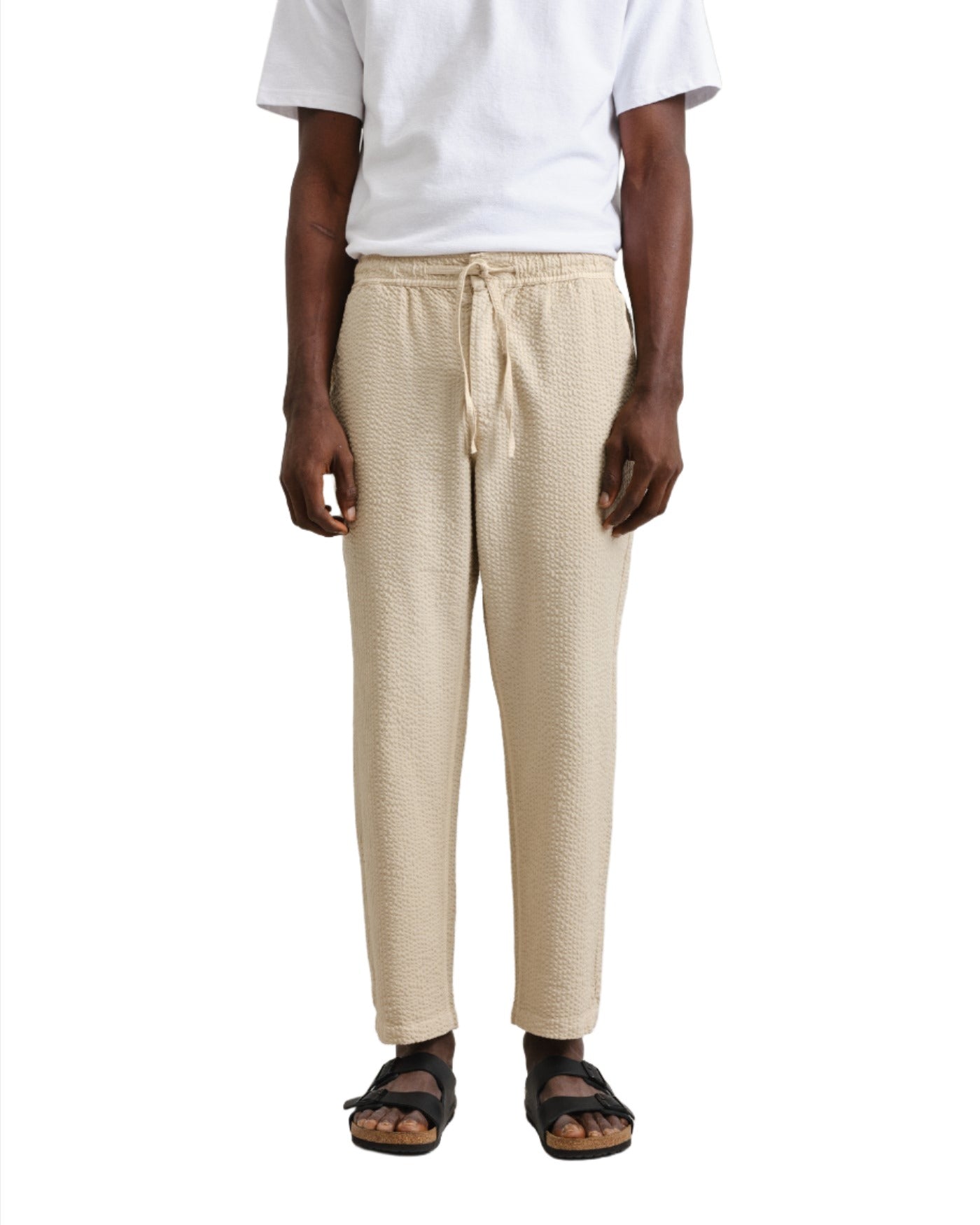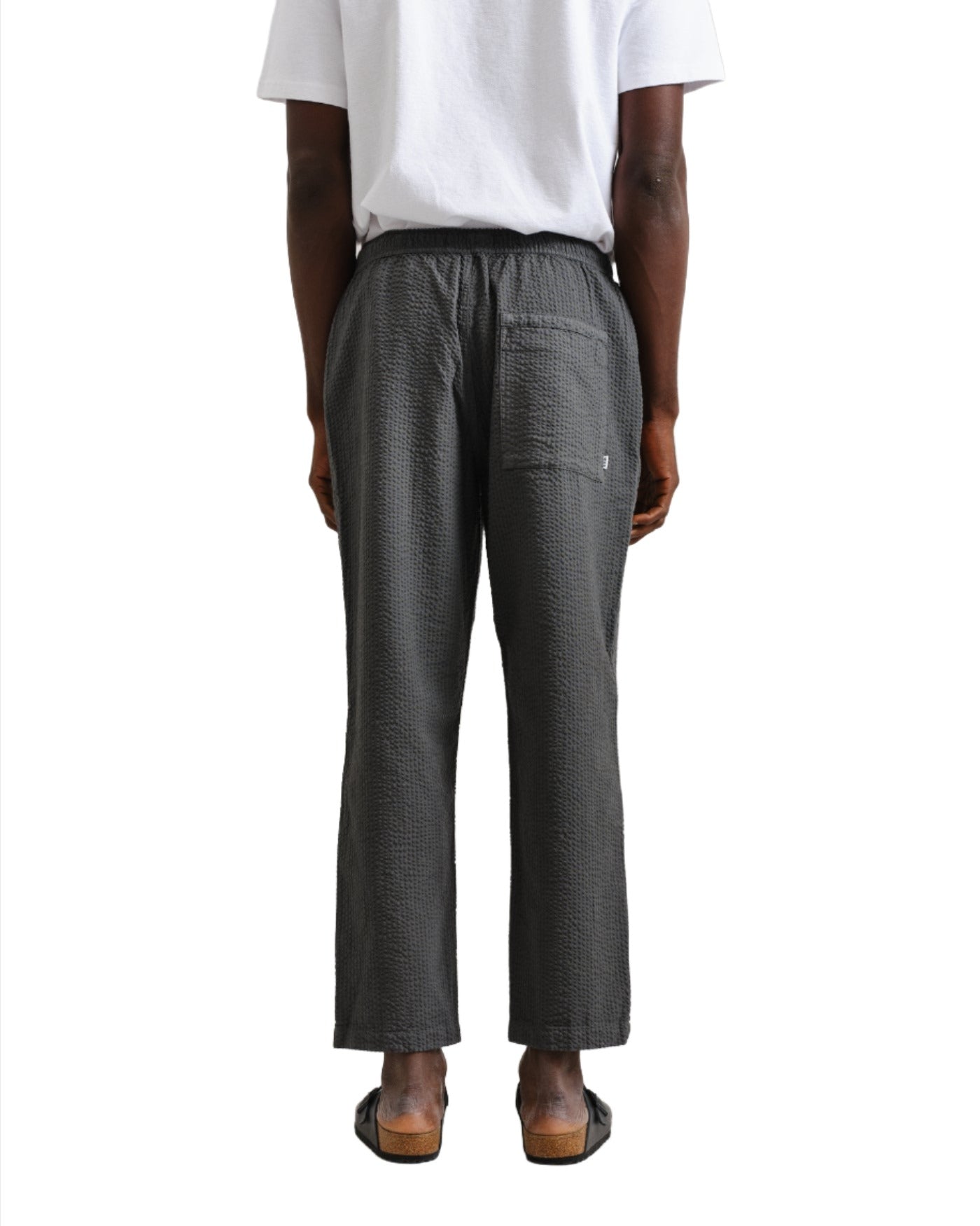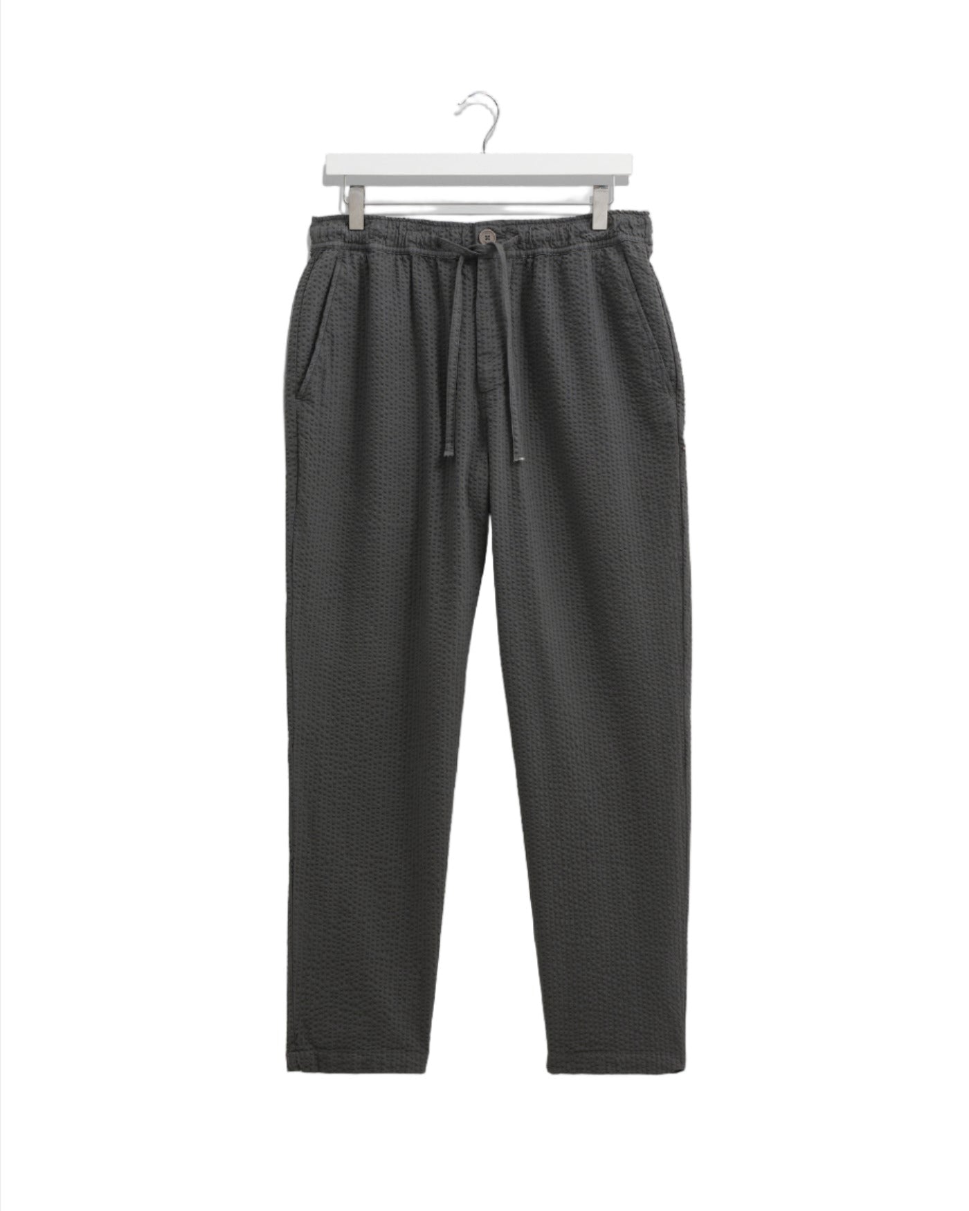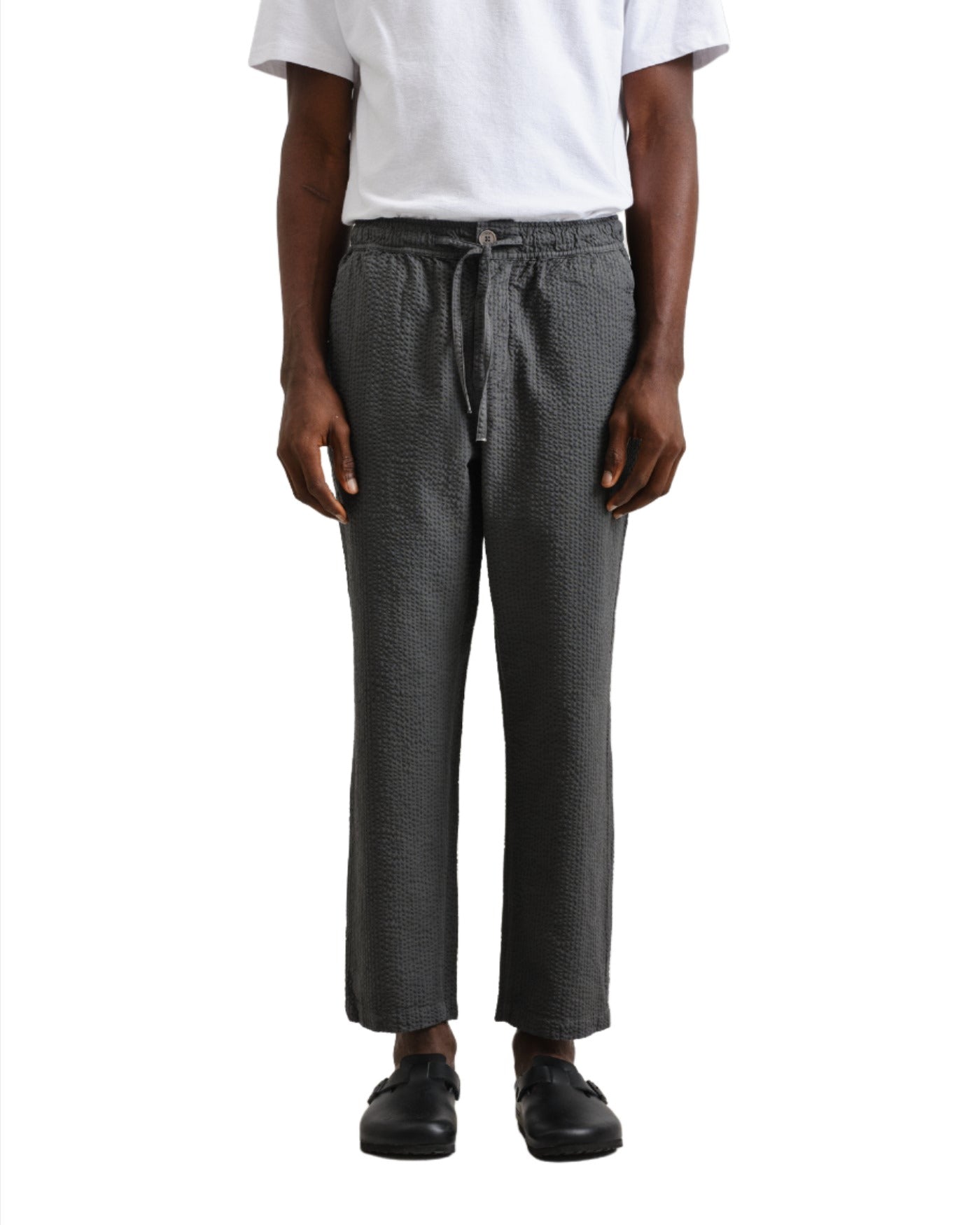 We have updated our signature Kurt Trousers in a lightweight and textured Seersucker cotton in Charocal.