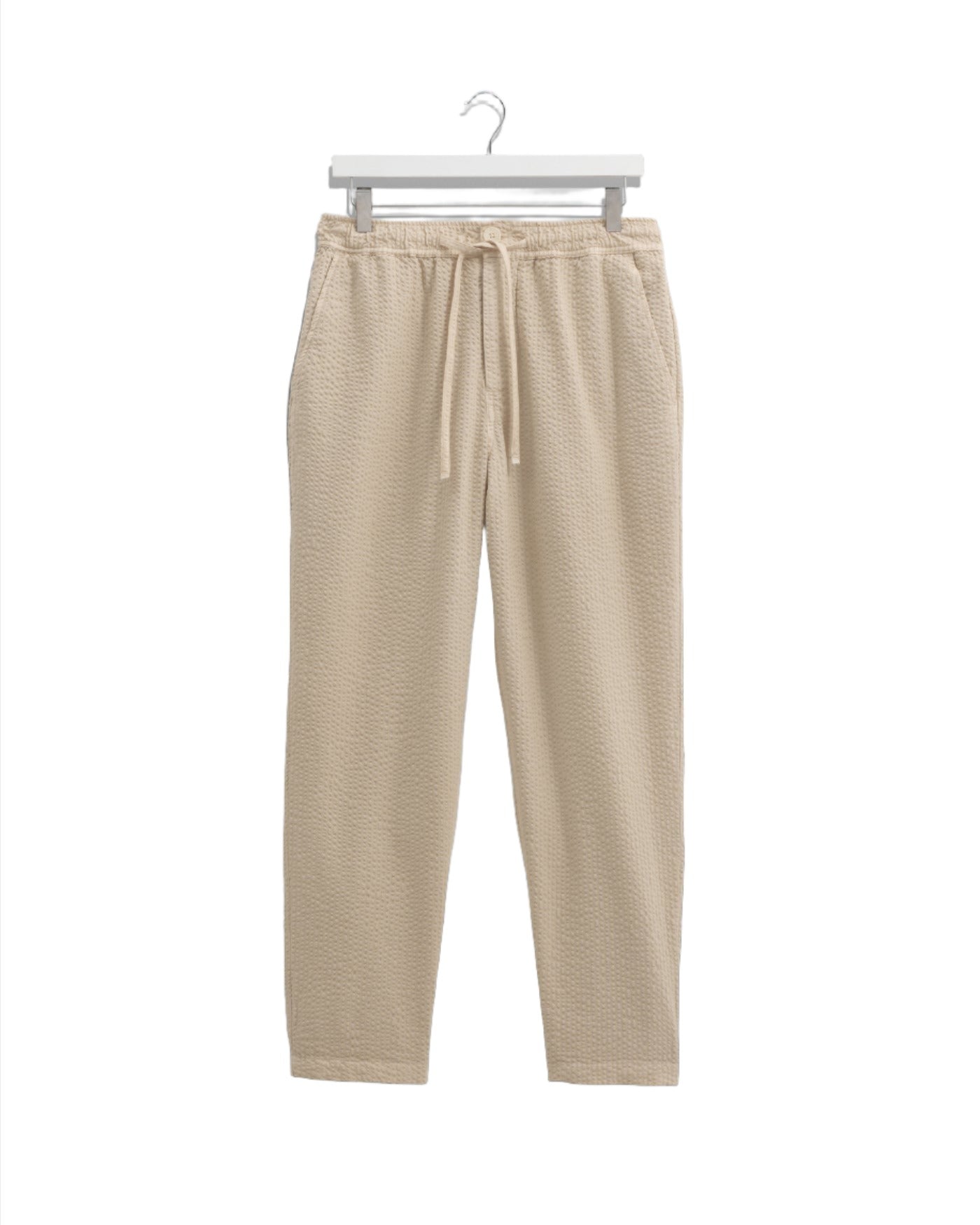 Seersucker is a 'puckered' fabric which keeps the majority of material away from the skin. This allows air to circulate throughout the garment and keeps you cool.